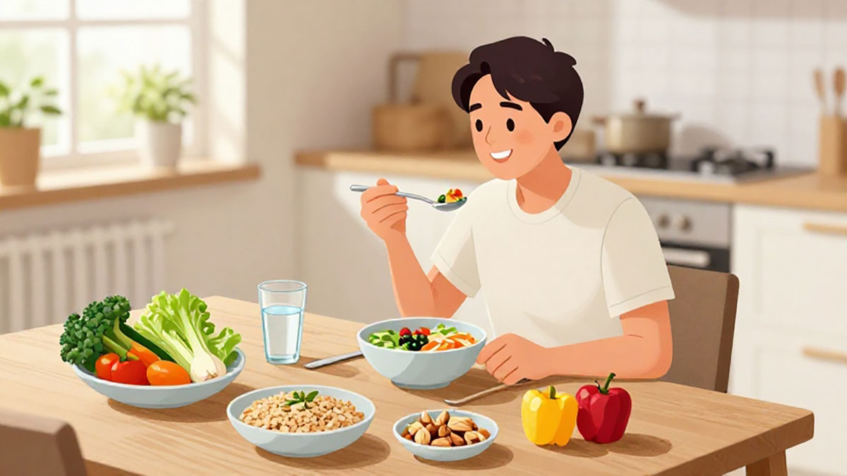 Selain jenis makanan, cara makan juga memengaruhi efektivitas diet. Bagi orang yang malas olahraga, membagi porsi makan menjadi lebih kecil dan lebih sering bisa membantu mengontrol rasa lapar dan mencegah makan berlebihan. Mengatur jadwal makan yang konsisten juga penting untuk menjaga kadar gula darah tetap stabil. Mengonsumsi sarapan sehat setiap pagi dapat meningkatkan energi dan mengurangi keinginan ngemil di siang hari. Sementara makan malam sebaiknya lebih ringan agar tubuh memiliki waktu mencerna sebelum tidur.