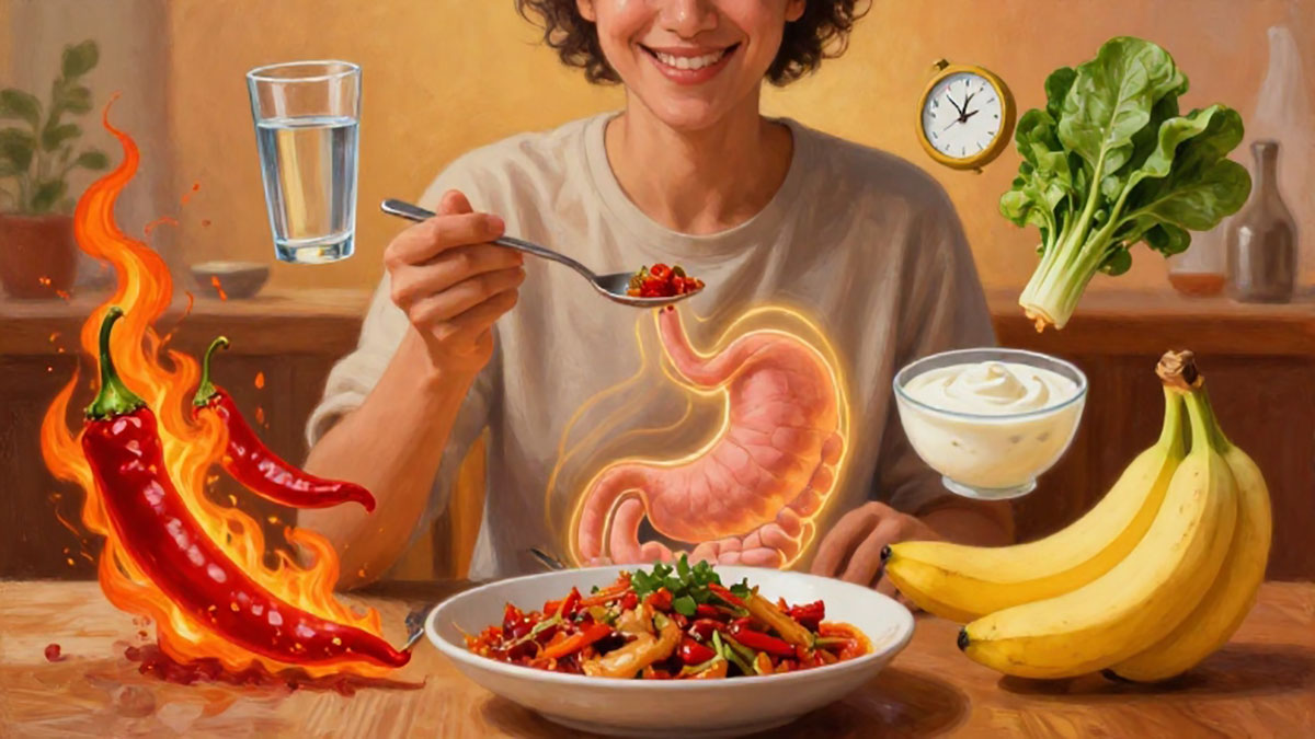 Untuk menjaga kesehatan lambung, penting menyeimbangkan makanan pedas dengan makanan yang bersifat menenangkan lambung. Susu, yogurt, atau makanan berbahan dasar santan dalam jumlah wajar dapat membantu meredakan sensasi panas akibat capsaicin. Selain itu, konsumsi sayuran hijau dan buah non-asam juga baik untuk menjaga keseimbangan asam lambung.